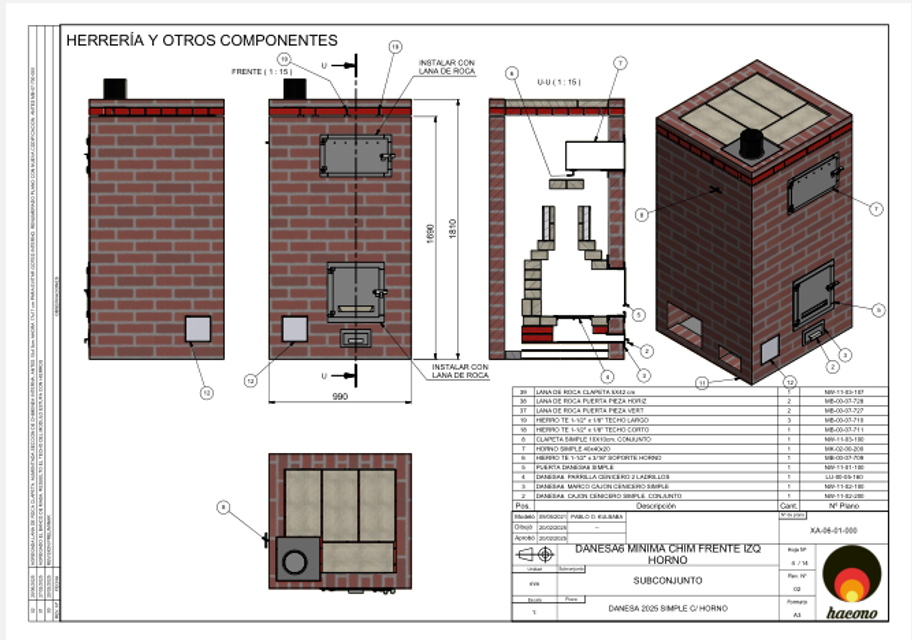 El Plano PDF de estufa Danesa6 – versión de campana MÍNIMA corresponde a un diseño completo y compacto de estufa a leña de alto rendimiento, optimizado para ocupar el menor volumen posible sin resignar eficiencia térmica.